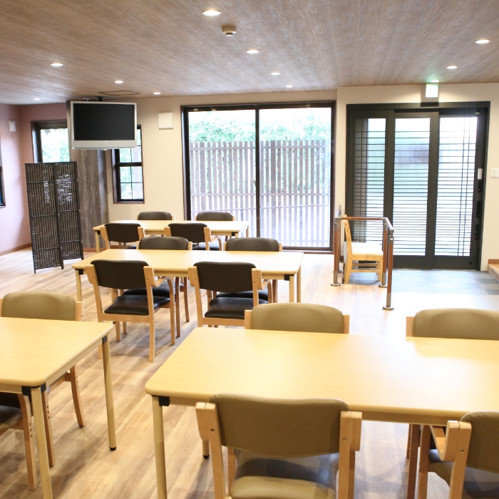 | 利用案内 | 通所介護(通常規模)定員23名(1日11名/半日12名) 個別機能訓練加算Ⅱ(運動機能向上加算)、介護職員処遇改善加算Ⅰ サービス提供体制加算Ⅱ、介護職員特定処遇改善加算Ⅱ |